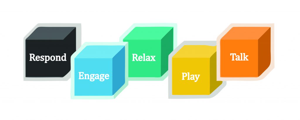 Adults are able to connect with other people without touching them – if they respond to us, we can engage with them and then relax so that our brains can work. A successful connection of this type takes place on the right-hand side of the brain through nonverbal communication (play) and the left-hand side of the brain through verbal communication (talk). This sequence helps us improve our connections with other people.