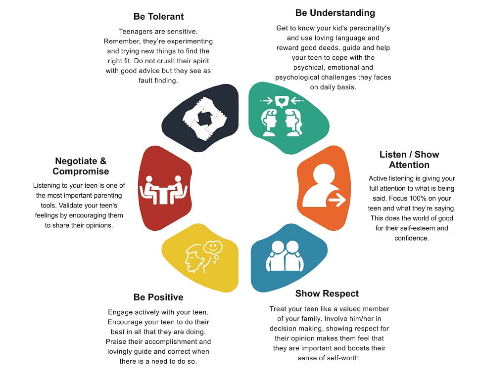This is what makes parenting teenagers a tough task—as parents, sticking to the old-fashioned way of handling things is not going to help improve your relationship. The secret technique here is about changing your role from ‘tell ‘ to ‘listen.’